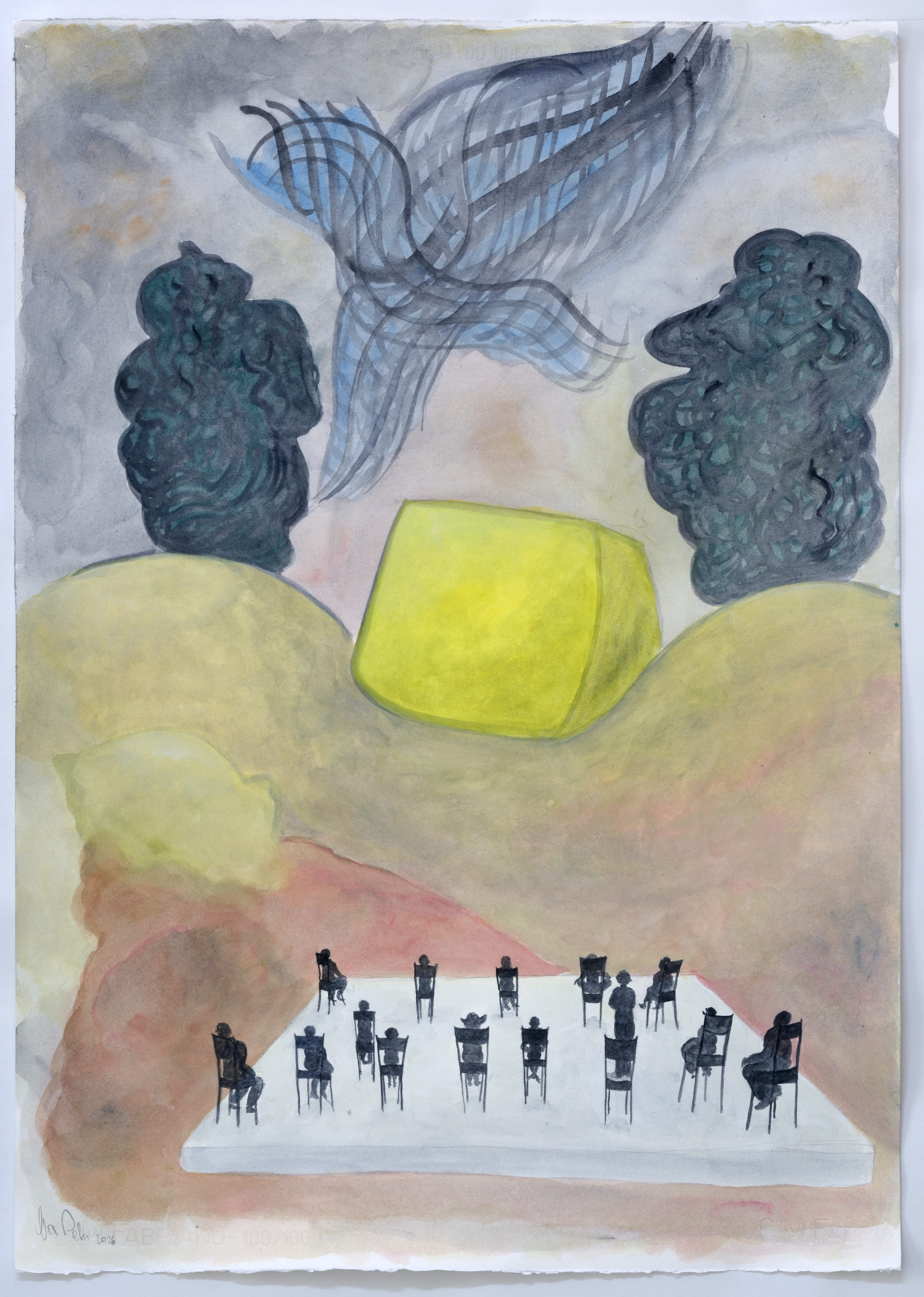Gouache/Acryl auf Papier, 70 x 100 cm, 2023